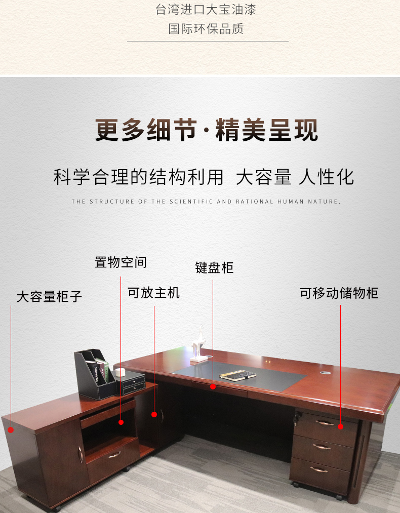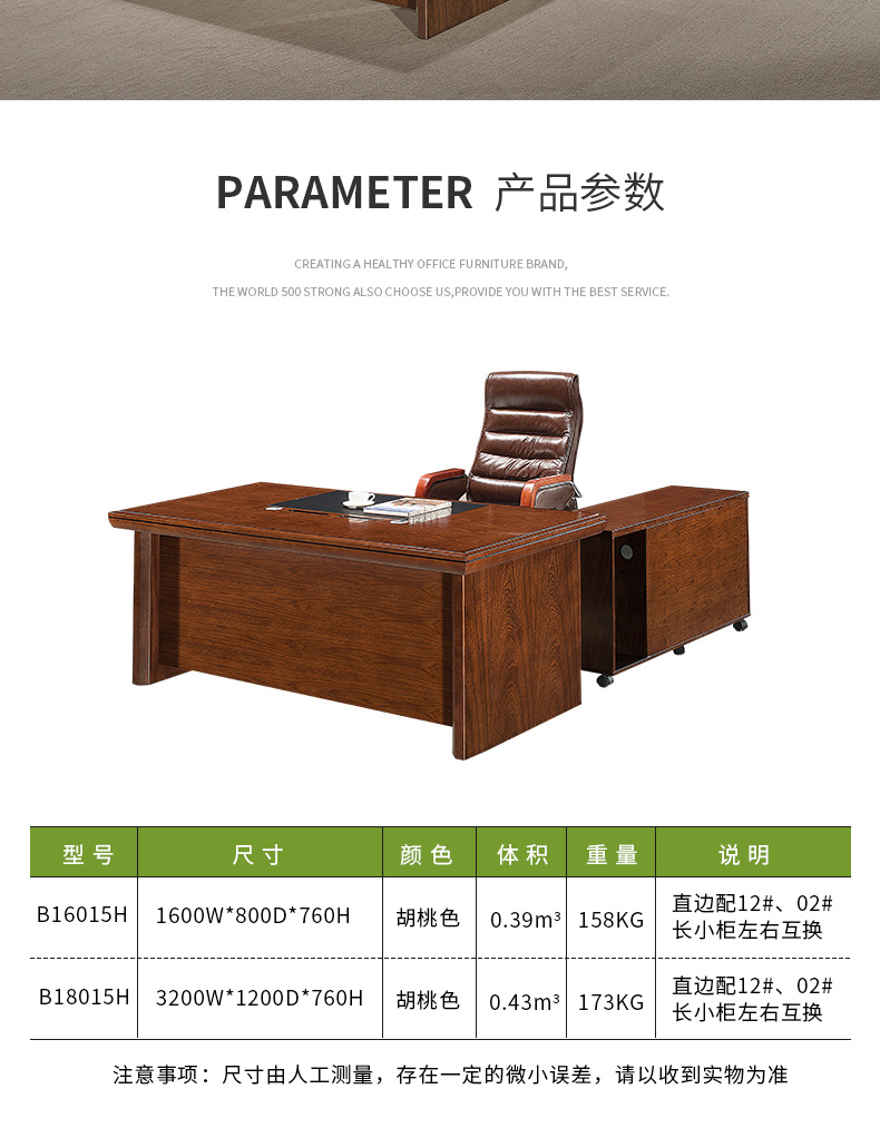 胡桃色實木油漆大班臺B16015H