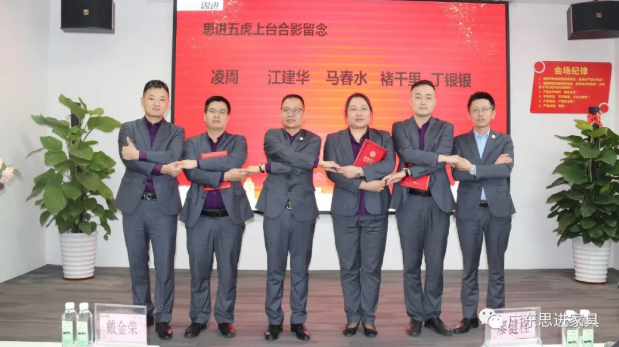 ?思進品牌總經(jīng)理戴金榮與“銷售五虎”手牽手、心連心,共同展望未來
